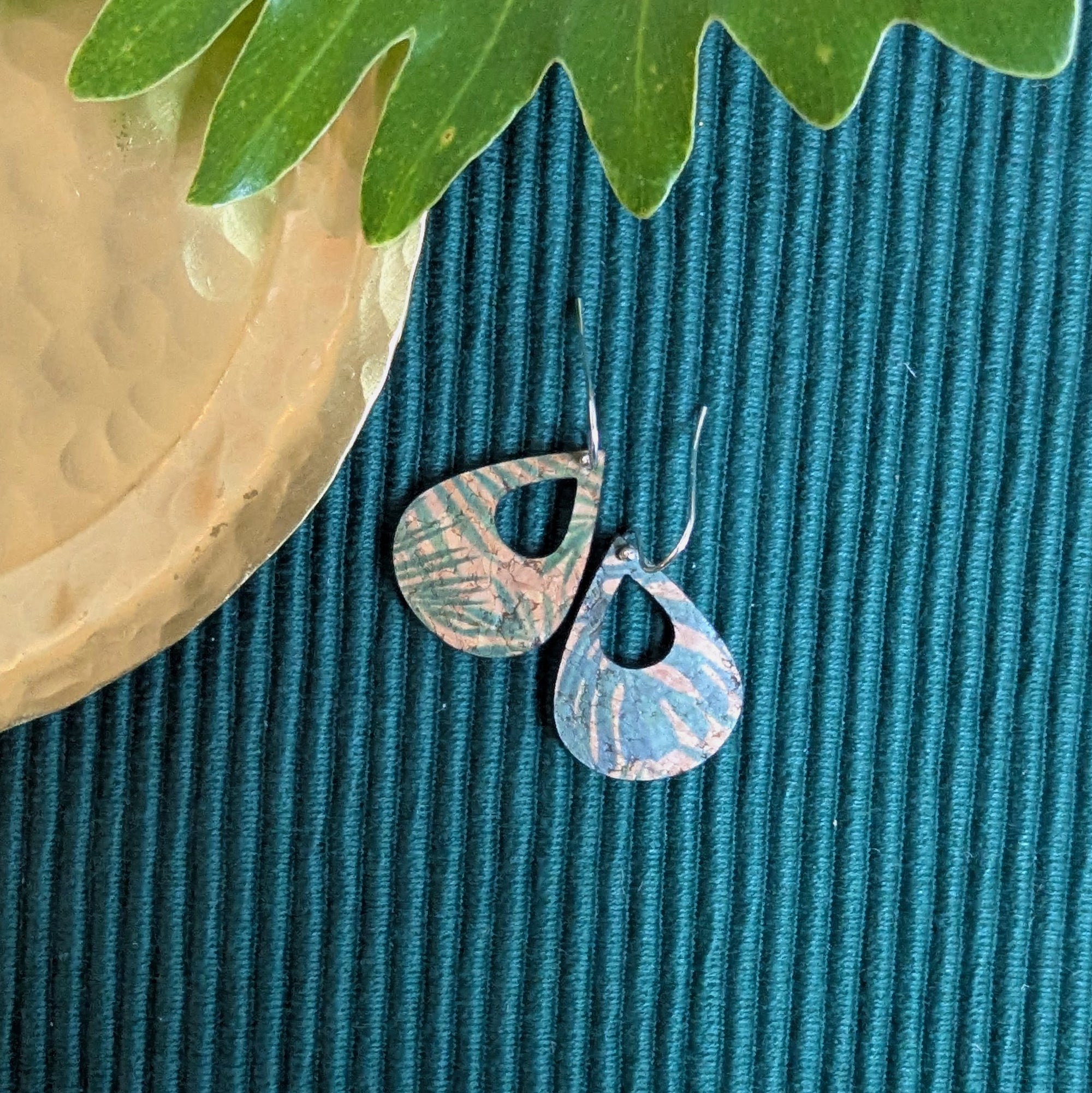 Blue Fall Leaves Cork Earrings - Small Teardrop
