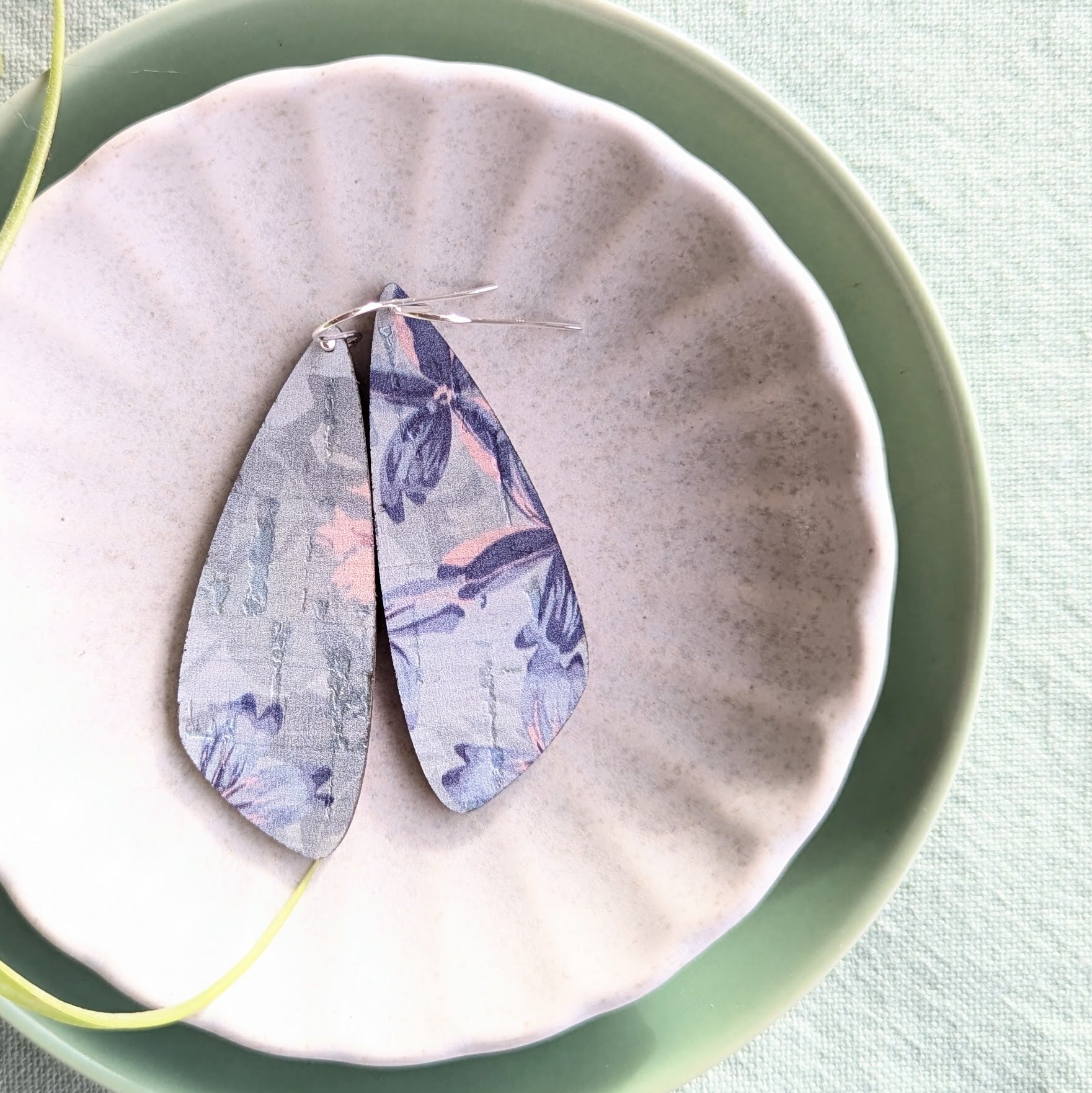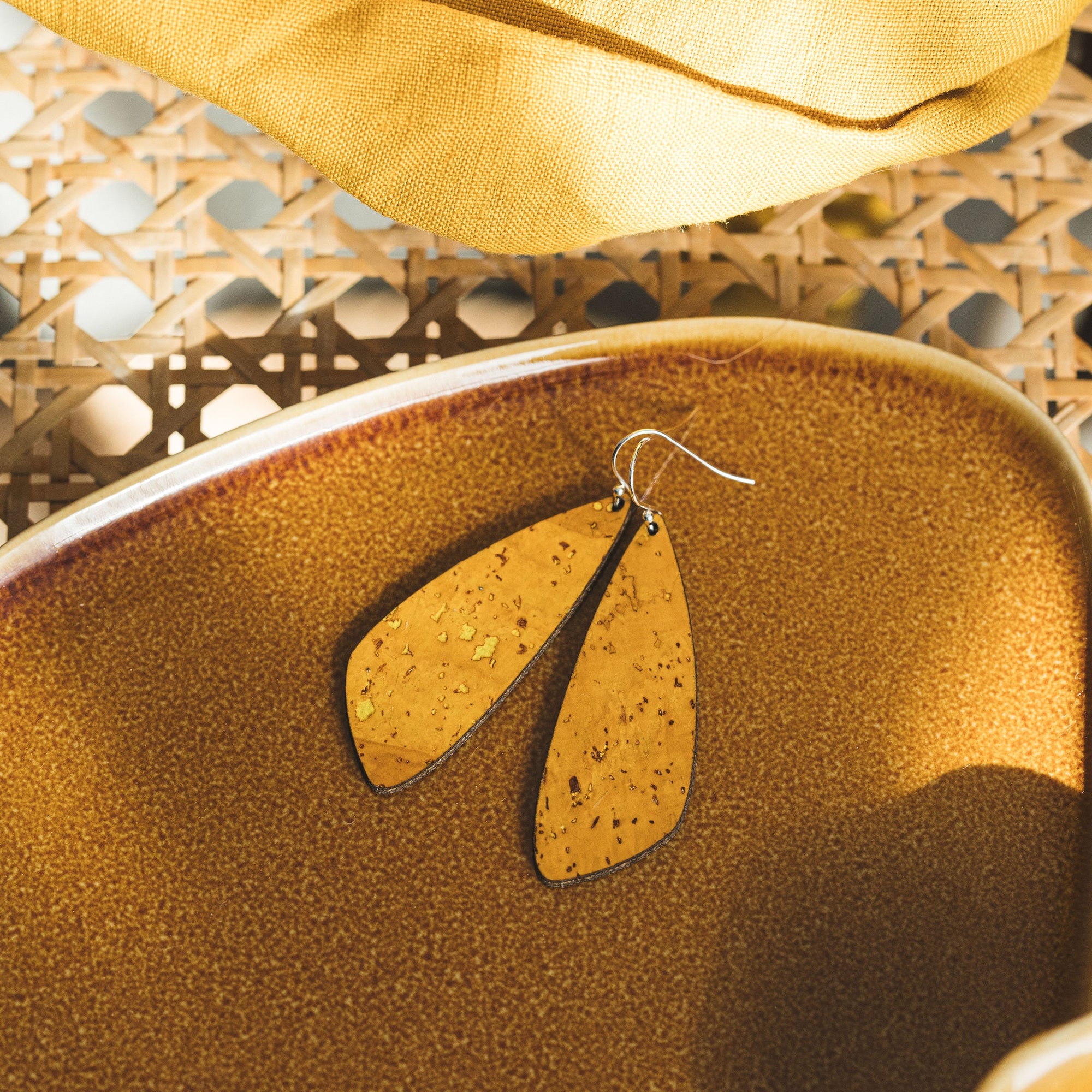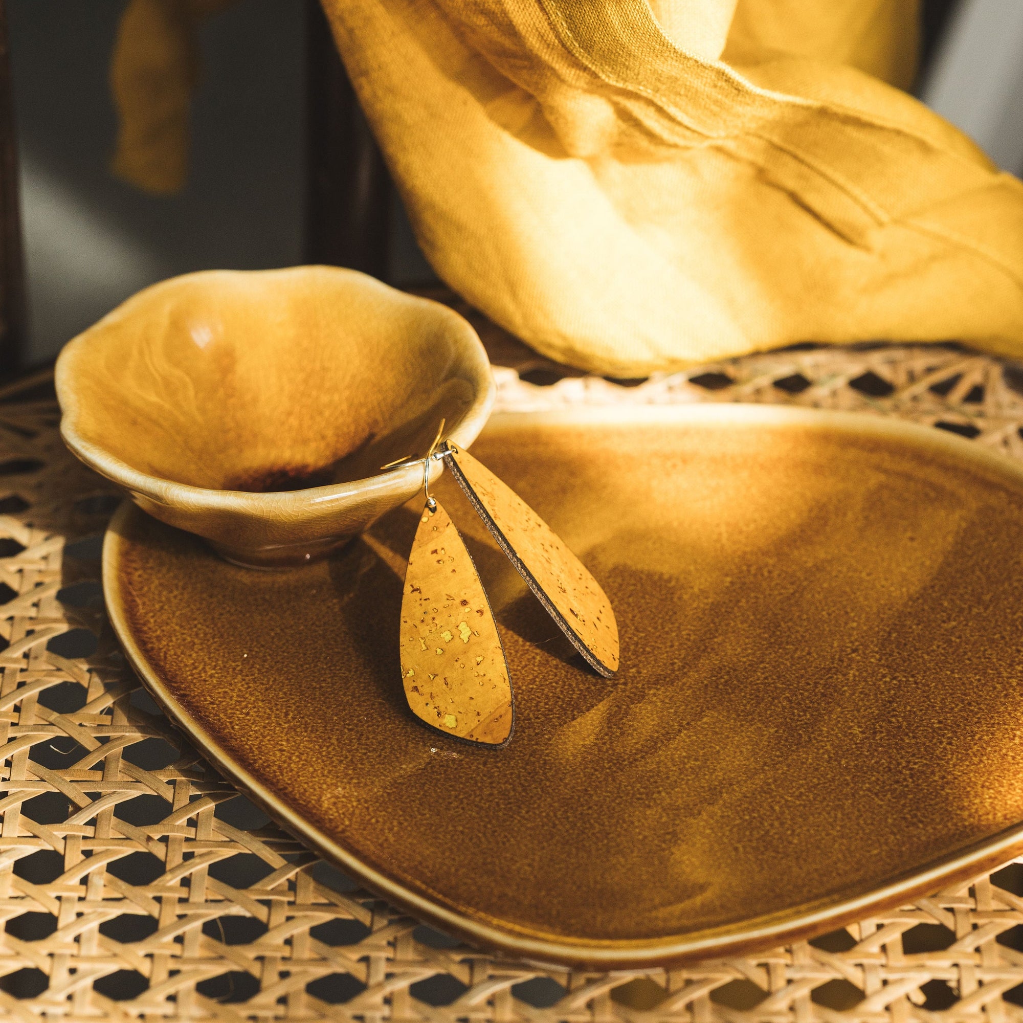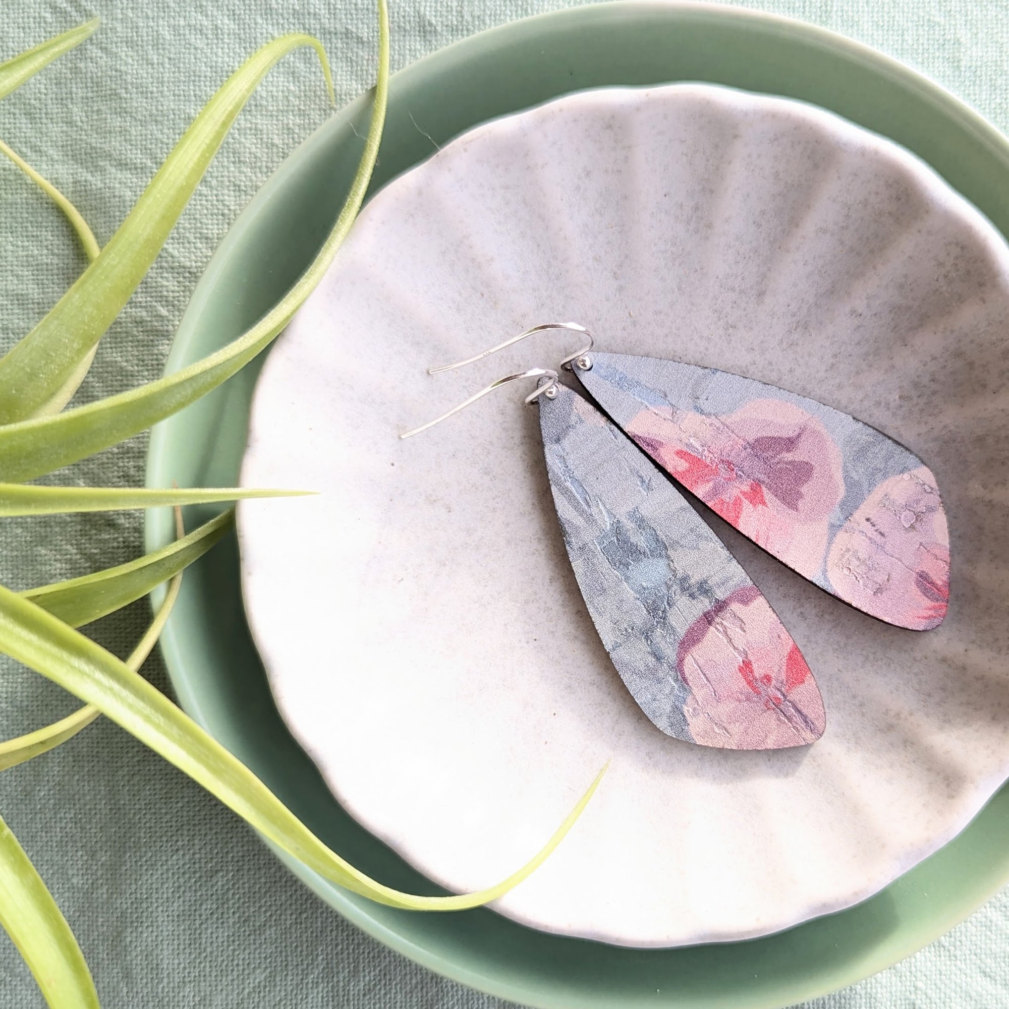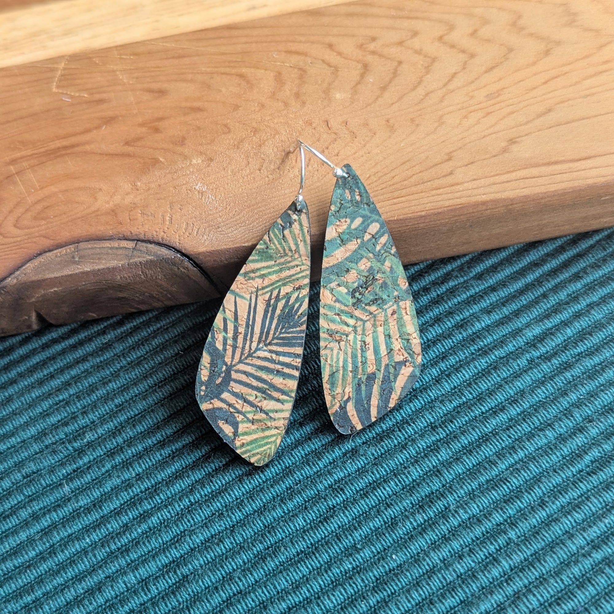 Green and Fuchsia Leaves Cork Earrings - Small Wing