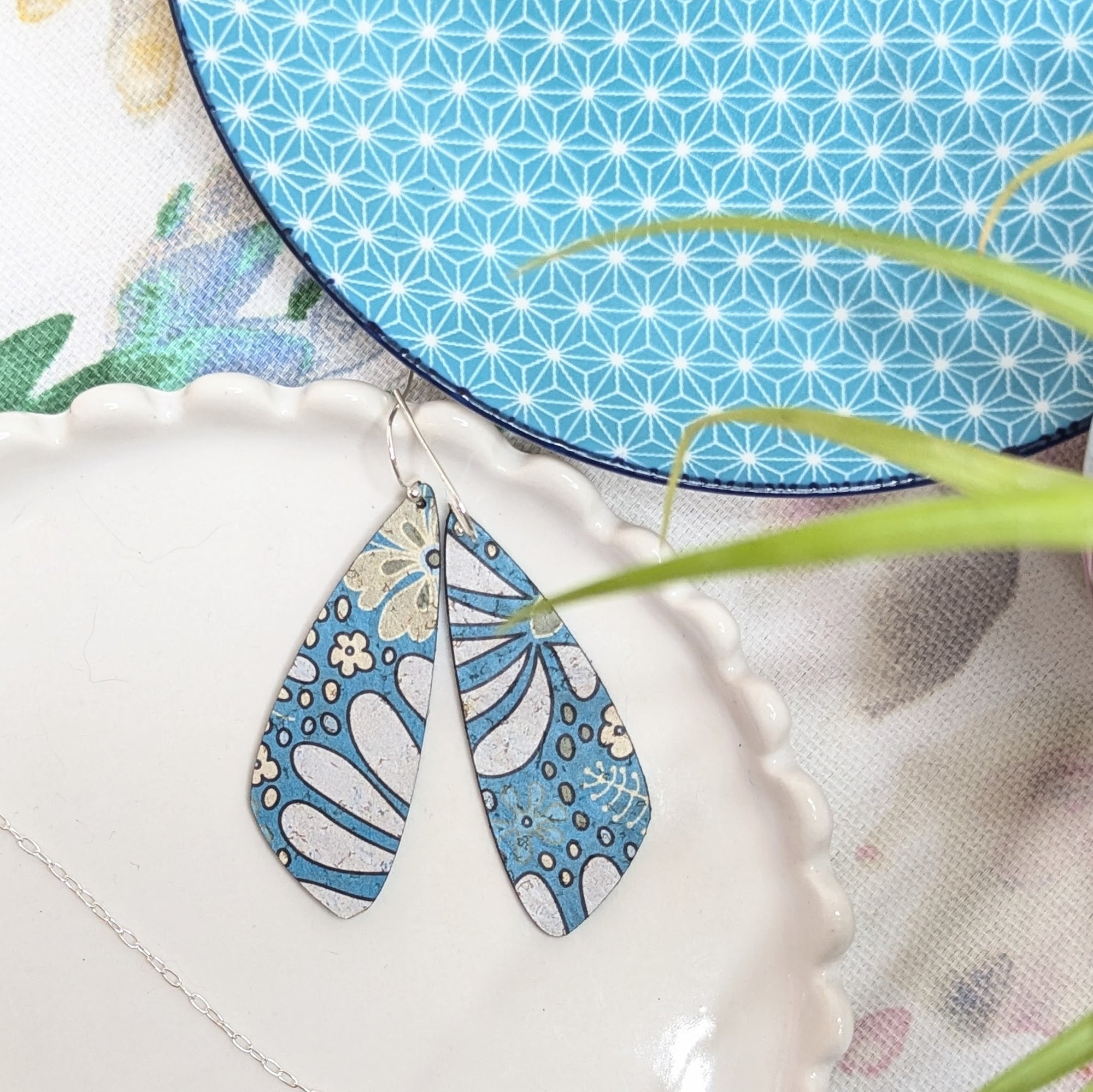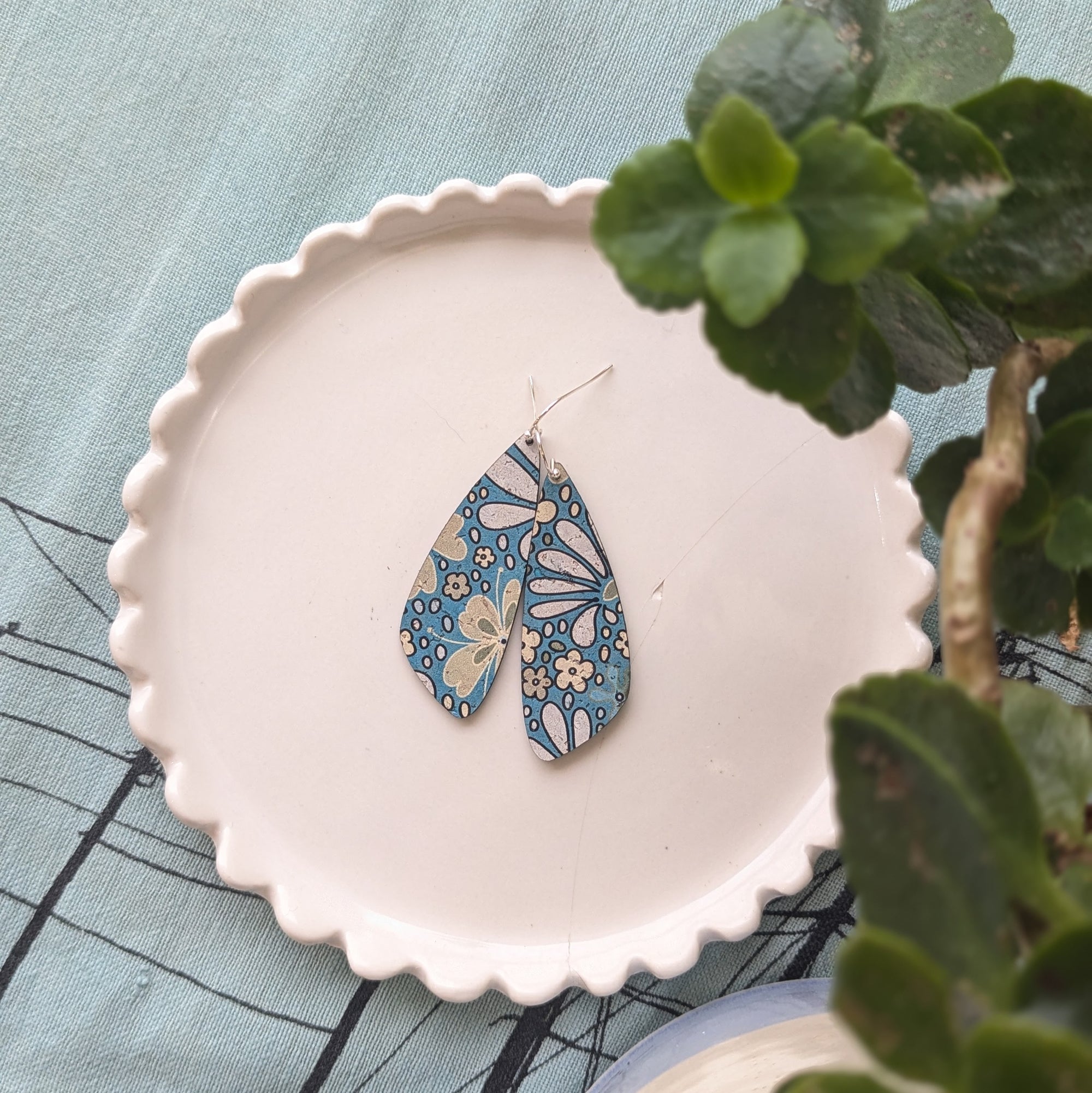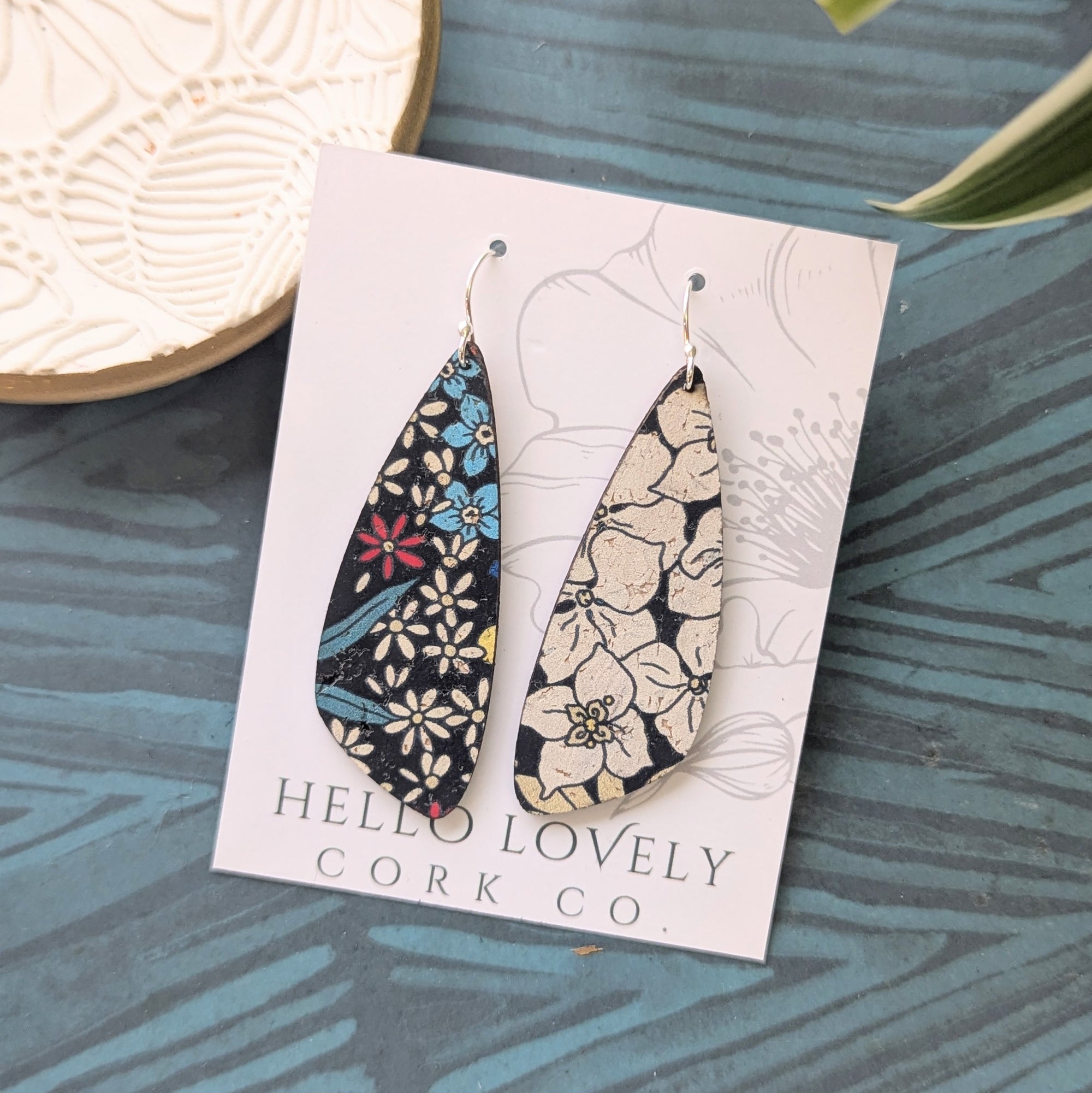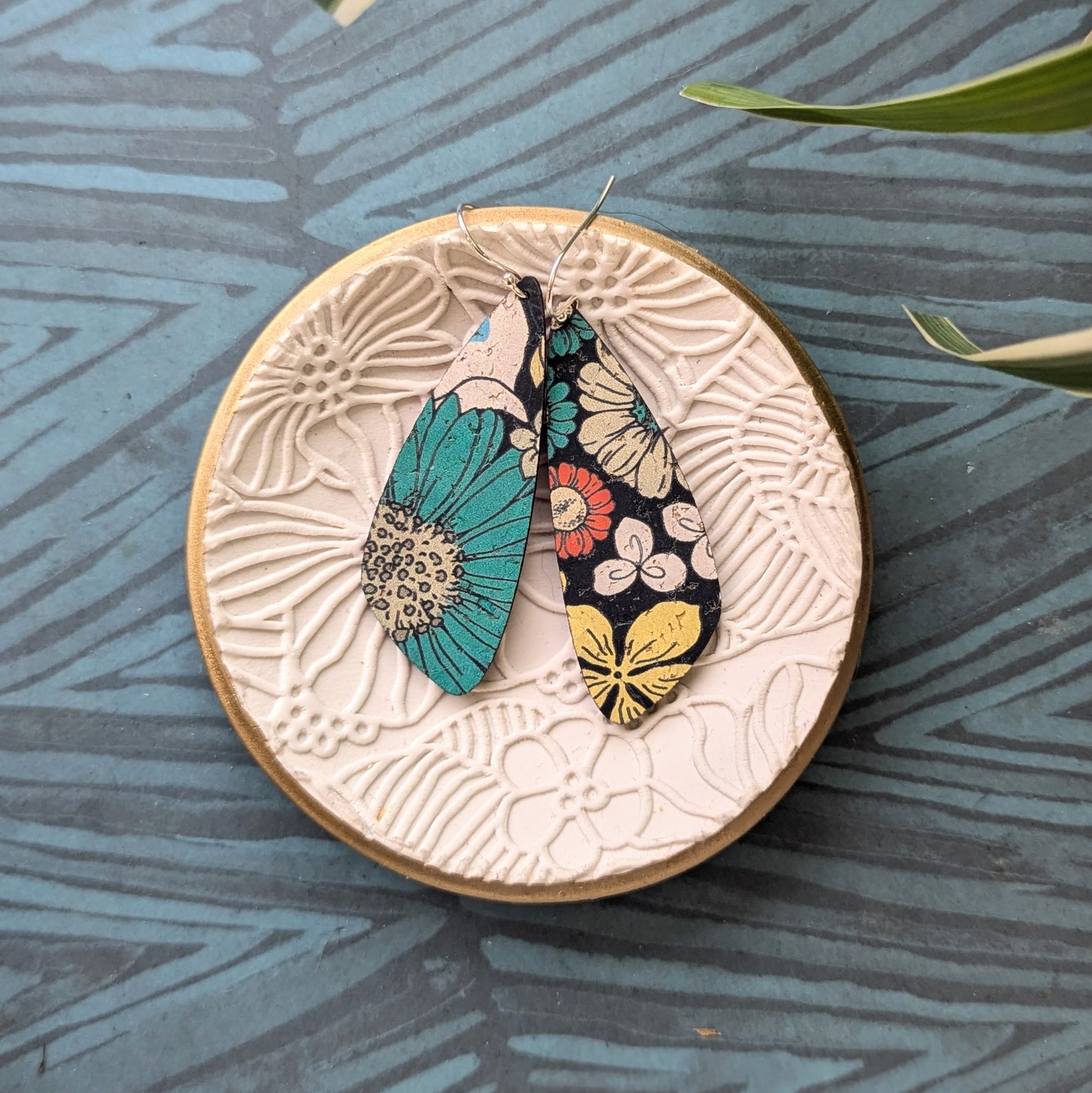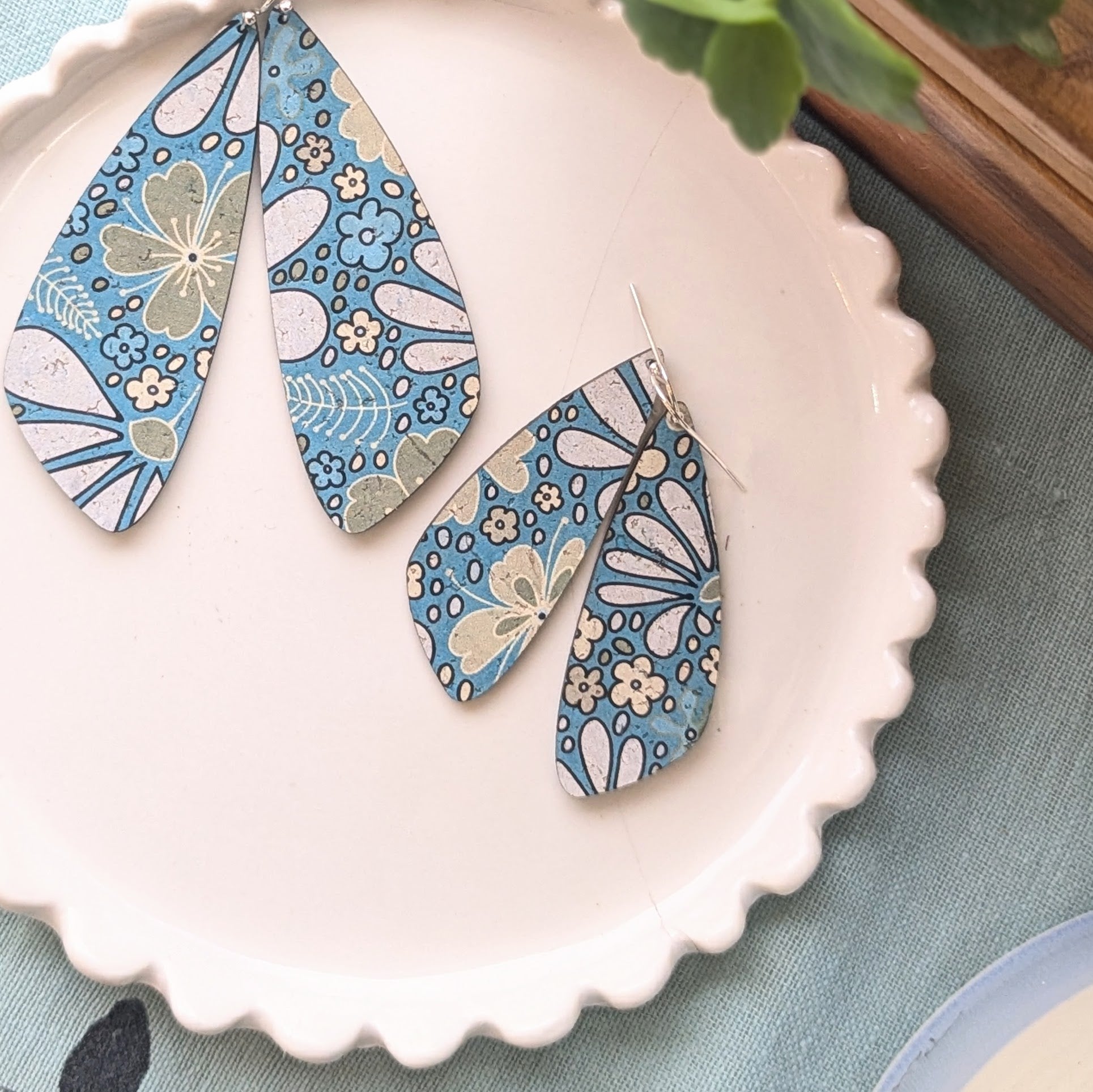 Red Yellow Blue Dahlia Cork Earrings - Small Wing
